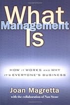 What Management Is, by former Harvard Business Review editors Joan Magretta and Nan Stone, identifies management as the driving force behind key innovations of the past century and presents a jargon-free look at the way its core principles work. Designed to promote "managerial literacy" up and down the business food chain, as well as among those who simply "want better communities and a better world for our children," the book uses concrete examples to explain fundamental concepts and practices like value creation, the 80-20 rule, and decision analysis in a way that sheds light on them for the uninitiated while providing needed perspective for the more experienced. "Think of this book as everything you wanted to know about management but were afraid to ask," Magretta and Stone write. A comprehensive exploration of the overall process rather than a traditional how-to, in its first section What Management Is examines why and how people work together; the second section shows how ideas are translated into action. With case studies ranging from Old Economy stalwarts like Ford to New Economy upstarts like Dell, along with pioneering nonprofits such as the Nature Conservancy and India's Aravind Eye Hospital, the authors explicitly lay out the basics along with a framework for employing them in a wide variety of situations. --Howard Rothman